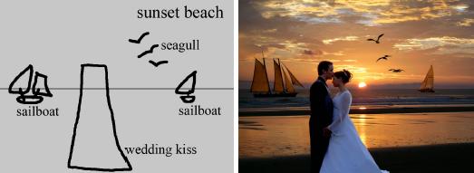 该论文提出了一个基于互联网的图像合成系统,它可以将用户输入的带文字标签的手绘草图半自动的转换成一张具有真实感的合成图像。该合成图像由多张互联网上搜索到的图像无缝拼接而成。该系统包含以下几个步骤:一、输入用户草图,根据文字标签从互联网自动下载图像。二、计算机对所有下载图像进行基于轮廓和内容一致性的图像过滤,去除不符合要求的图像,并将前景图像自动分割出来。三、计算最优的图像合成组合。四、对排序的前十组组合进行自动合成,将结果提供给用户,用户可以选择满意的合成结果,并进行简单的交互修正。