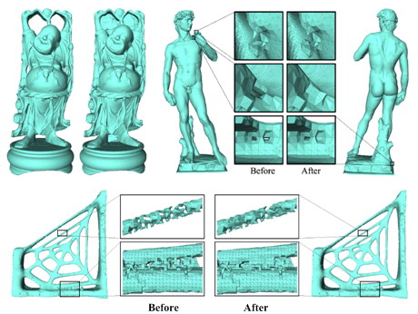 图2-1显示了我们的算法对复杂模型的拓扑修复。