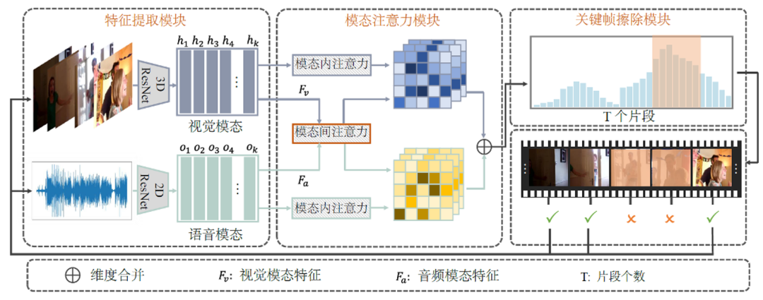 为建模逐帧情感,团队提出了一种全新的跨模态时间擦除网络。与现有方法主要依赖某些“情感显著帧”不同,该方法引入了跨模态建模(视觉+ 音频)与上下文感知机制,让模型学会在视频的连续片段中理解情感的发展轨迹。如图2,该方法的核心设计包括两个模块:一是时序关联学习模块,用于发现不同视频片段在视觉与音频模态之间的潜在联系;二是时序擦除模块,它会在训练中动态“抹去”最容易引起模型注意的显著特征,引导模型去关注那些容易被忽略、但对情感判断至关重要的上下文线索。这种“抹去显著、强化补充”的机制,极大提升了模型的鲁棒性和情感理解能力。